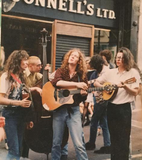 Additionally, the band were prominent buskers, running in a peer group that included musicians Mic Christopher, Glen Hansard, Mark Dignam, The Cheila Brothers, and Dave Odlum. For street performances, Ó Broin handily had a double bass he could perform on unplugged. For up to five hours they’d play on Grafton Street in the summer with up to 200 people watching on. Then they’d gather up all the coins and go off and do their thing.
